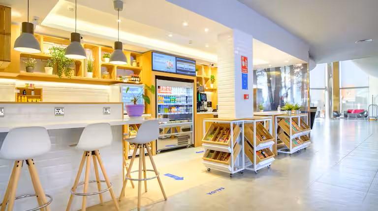 Entre sus instalaciones destacan la piscina exterior, el gimnasio, la tienda 24 horas, zonas de reuniones y una lavandería de autoservicio. Su restaurante de ambiente relajado y su coctelería ofrecen un espacio ideal para desconectar al final del día. Además, cuenta con servicio de habitaciones y parking privado para mayor comodidad.