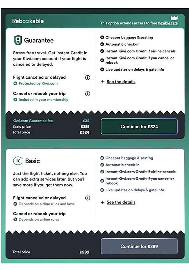 Kiwi.com Guarantee: reembolso inmediato para reservar un vuelo alternativo si algo sale mal