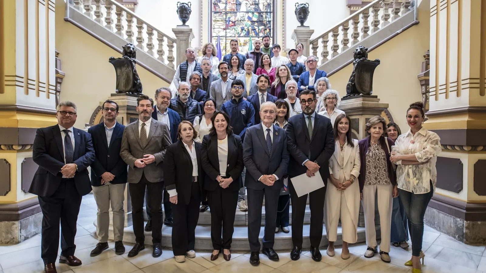 El alcalde de Málaga, Francisco de la Torre, junto a la concejala delegada de Cultura y Patrimonio Histórico, Mariana Pineda; la directora de Comunicación y Relaciones Externas de Cervezas Victoria, Genoveva Ferragut; y el director de Actividades Culturales de Fundación Unicaja, José María Luna, ha informado sobre la programación de esta edición.
