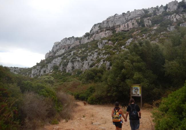 Una joven pareja se adentra en el cañón. J. A.Recuerda al Torcal de Antequera por sus rocas erosionadas y por su frondosa vegetacion, pero, en este caso cabe añadir que lo que se visita es una angostura, lo que hace el recorrido aún más trepidante.
