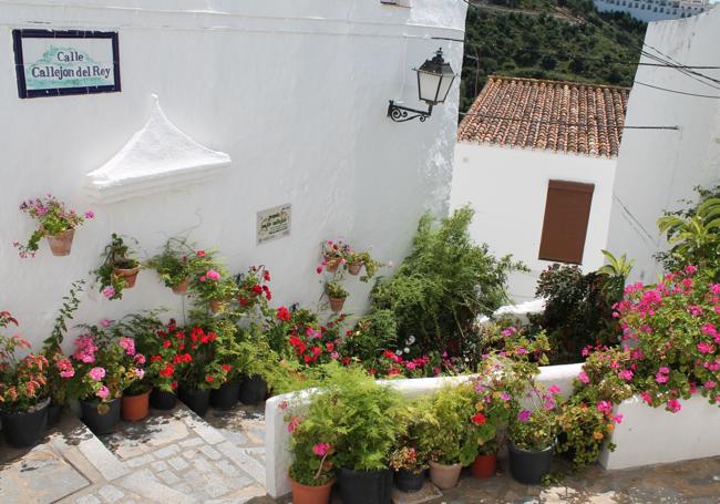 Rincón con encanto en el pueblo. J. A.Aún en verano, hay que adentrarse en las calles empinadas de Casares, que, por su disposición, se ganó hace décadas el lema de 'pueblo colgante'.