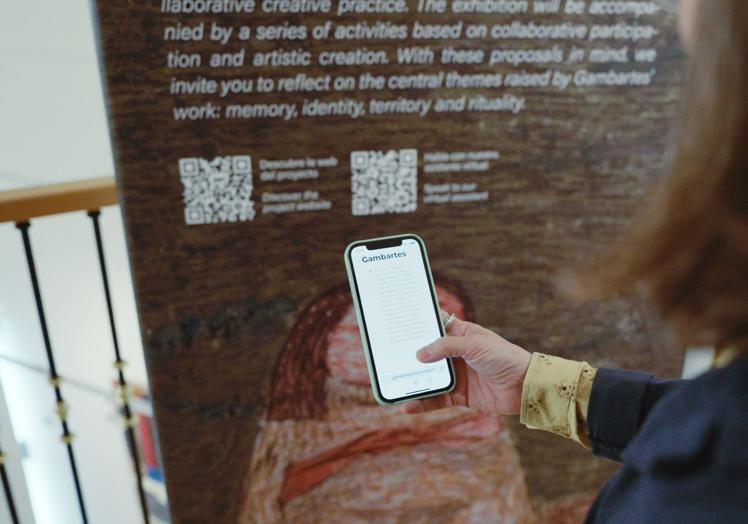 A través de una conversación, la persona visitante descubre nuevos matices y conexiones, profundizando en el universo simbólico de Gambartes de una manera más personal y dinámica. El acceso al experto virtual se realiza mediante un código QR disponible en sala o desde el sitio web del proyecto.