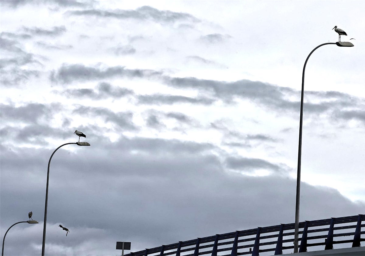 Las cigüeñas ya no pasan de largo por Málaga: un centenar invernan junto a la Hiperronda
